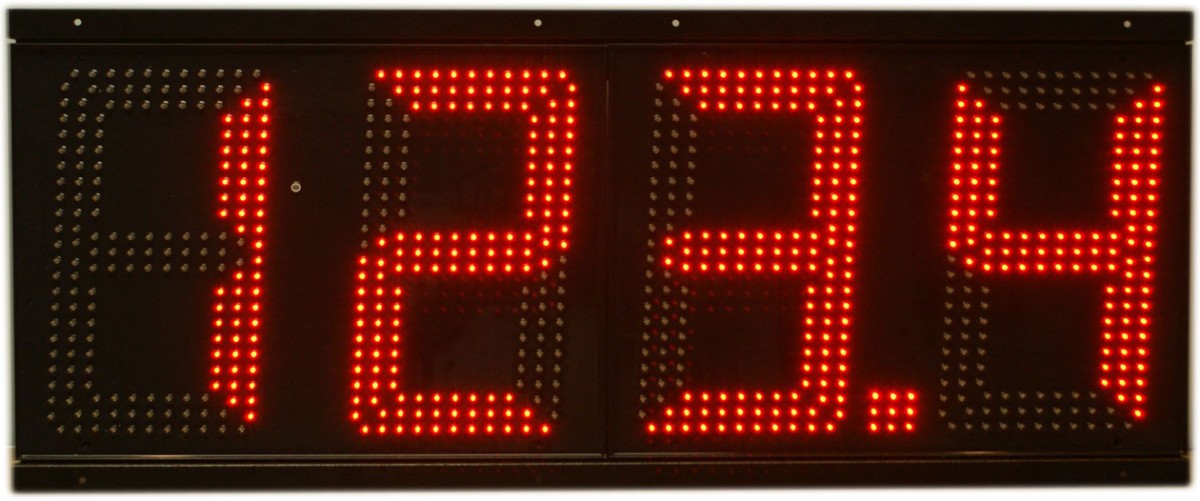Thanks to the LED technique, since 2010, Grand Vision Electronics engaged in supply of LED Gas Price display boards since 2010. We now offer LED price board in 4digits, the 12inch(30cm) tall great numbers are readable up to 300m far away, you can have it in red, green, blue, amber and white color LEDs. And it is much more easy and simple to operate to change price by a hand-held remote controller, especially, use the LCD remote, you can operate in your gas station office, and do not need to run to the totem pylon.
